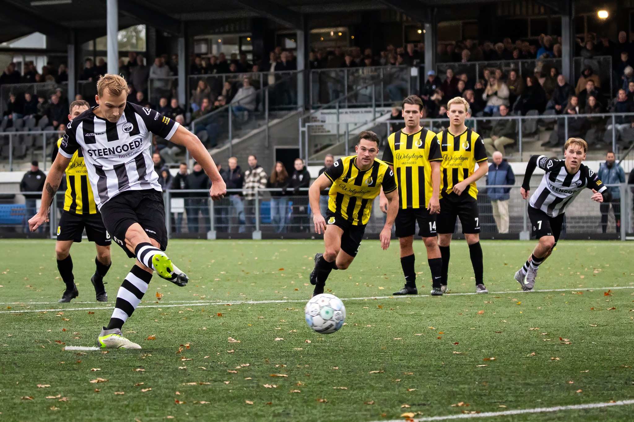Heerde heeft in een spectaculaire wedstrijd tegen koploper Zwart Wit '63 een verdiend punt behaald. Na een 2-2 ruststand werd het uiteindelijk 3-3. Heerde begon sterk aan de wedstrijd. Zwart-Wit'63 werd onder druk gezet, maar Heerde wist de kansen niet om te zetten in een verdiende voorsprong. Ten onrechte kwam Zwart Wit in de 27e min. via Mart Schuurman op voorsprong (1-0). Heerde behield de rust en kwam in de 35e min. terecht op gelijke hoogte, nadat Corstiaan Altenburg goed voorbereidend werk van Daan Nijmeijer afrondde Dezelfde Daan Nijmeijer scoorde, na goed doorzetten van Lucas de Jong, kort voor de rust de 1-2. Dit leek de verdiende ruststand te worden, maar een zeldzame fout van Vincent Mosterd betekende in het rustsignaal een strafschop die door Ruben Karssen werd verzilverd (2-2).