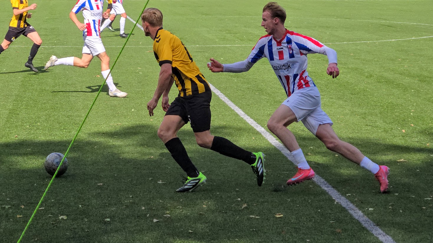 Heerde probeert het initiatief te nemen, maar stuit telkens op de sterke defensie van de gasten.