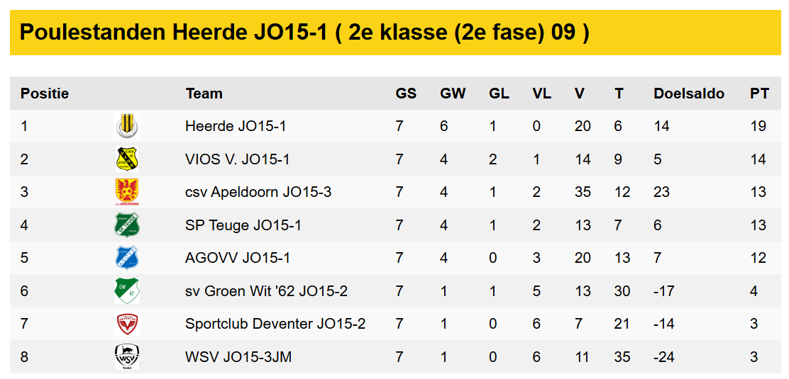 Op woensdagavond 17 december moest v.v. Heerde JO15-1 zijn laatste competitie wedstrijd spelen bij Vios in Vaassen die opdat moment 2e stond in de competitie onder koploper v.v. Heerde JO15-1. Dus de mannen wisten wat ze moesten doen om deze titel te behalen niet verliezen dus.